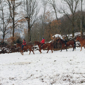 La Barana trabaja con caballos procedentes de su propia yeguada, criados localmente y preparados todo el año para clases, paseos y actividades. Cada caballo es seleccionado y preparado para ofrecer una experiencia segura y agradable, tanto para jinetes noveles como para más experimentados.