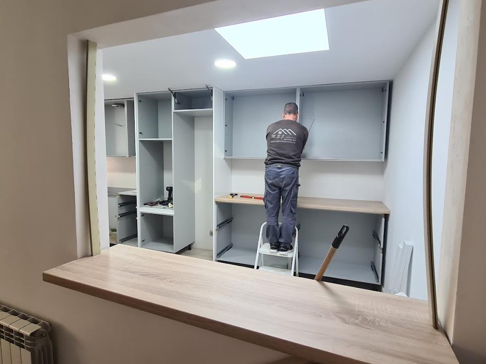 - Carpintería: En nuestra carpintería, fabricamos muebles a medida de alta calidad, incluyendo cocinas, parquet, puertas y ventanas. Nuestro equipo de carpinteros expertos se asegura de que cada pieza cumpla con tus especificaciones y expectativas.