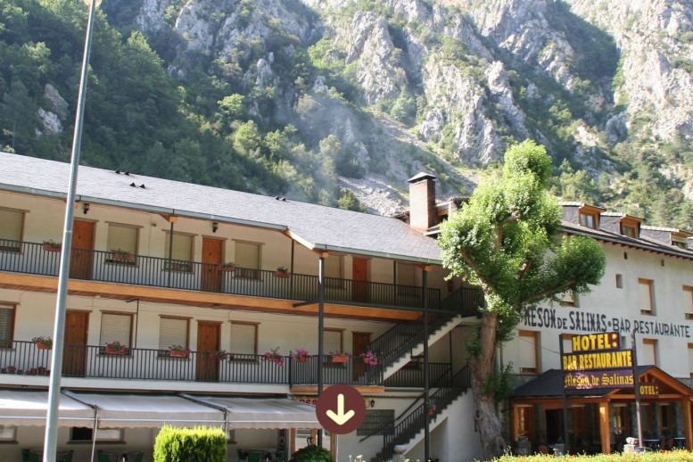 El Mesón de Salinas es un encantador hotel ubicado en un entorno natural privilegiado, cerca del desvío que conduce al Valle de Gistaín (Bal de Chistau), en el Pirineo de Huesca. Desde aquí, los huéspedes pueden explorar los lugares más emblemáticos de la región, incluidos el Valle de Pineta, el Cañón de Añisclo y la Garganta de Escuaín, todos parte del Parque Nacional de Ordesa y Monte Perdido.