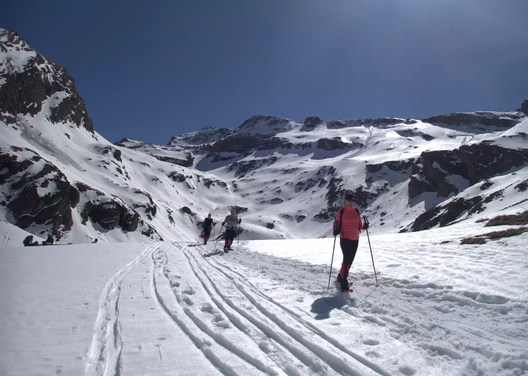En invierno, puedes optar por una aventura con raquetas de nieve, recorriendo caminos llenos de naturaleza virgen y disfrutando de un Pirineo cubierto de blanco.